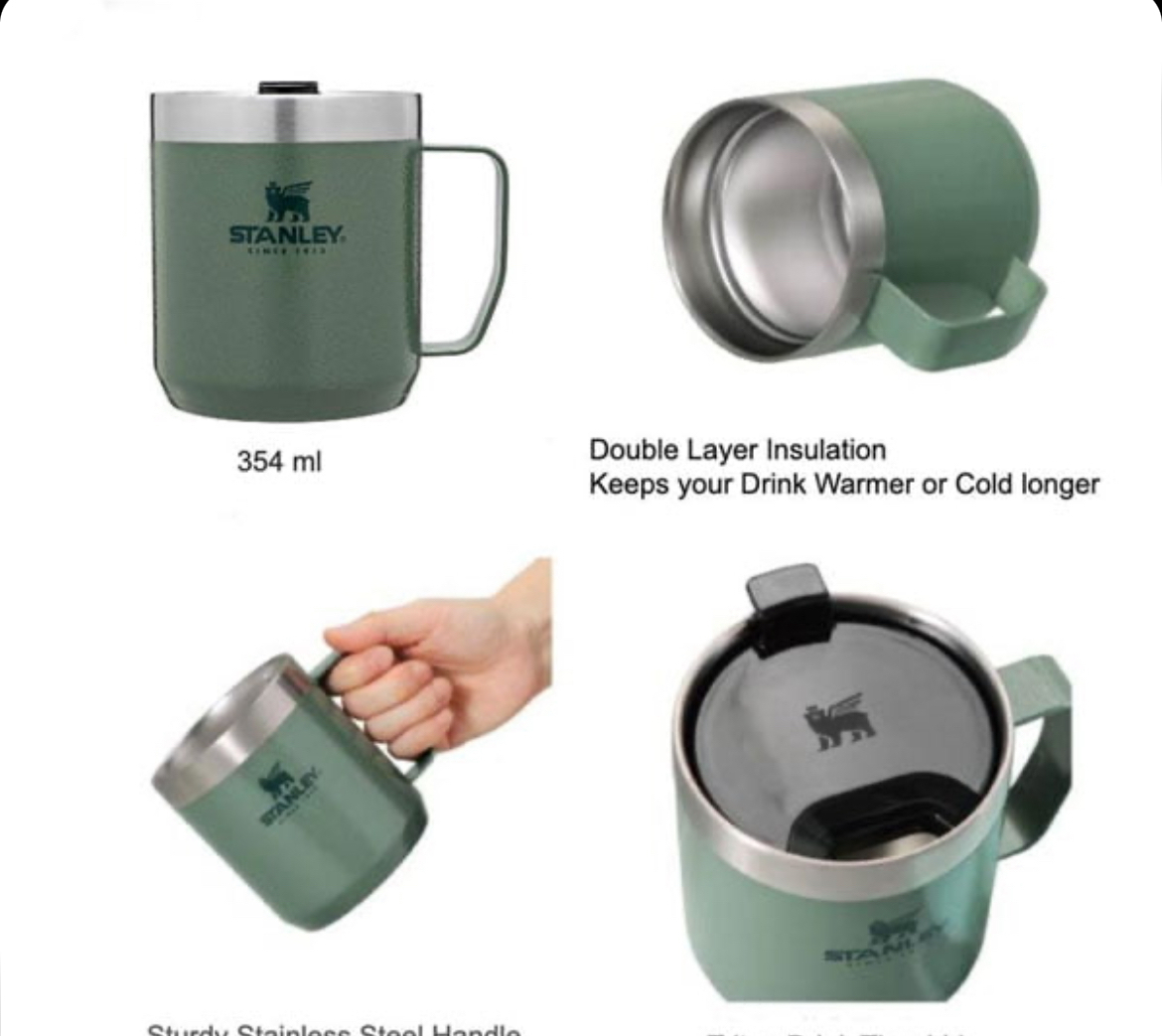- دلیلی وجود دارد که ما این لیوان کمپینگ را افسانه ای می نامیم. با عایق خلاء دو جداره Stanley سخت شده است، بنابراین نوشیدنی های مورد علاقه شما بیشتر گرم یا سرد می مانند. درب پرس مناسب Tritan™ همچنین از پاشش آب جلوگیری می کند تا بتوانید به راحتی در آشپزخانه، محل کار یا اطراف آتش میل کنید. لیوان کمپ استنلی به گونه ای طراحی شده است که با قهوه سازهای یک فنجانی و کلاسیک Perfect-Brew Pour Over ما برای کسانی که قهوه خود را جدی می گیرند سازگار است.