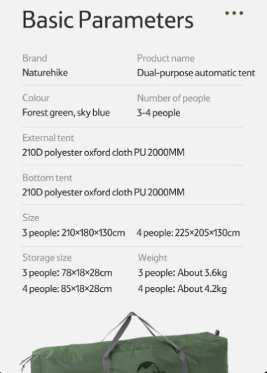 چادر اتوماتیک نیچر هایک 4 نفره | automatic tent for 4 people (NH21ZP008)