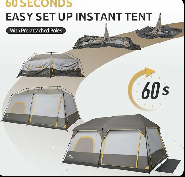 راه‌اندازی فوری در ۶۰ ثانیه – تیرک‌های از پیش متصل، برپایی چادر را سریع و آسان می‌کنند.