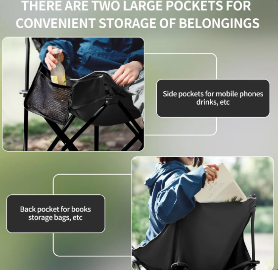 این صندلی مجهز به جیبهای ذخیرهسازی متعدد است.