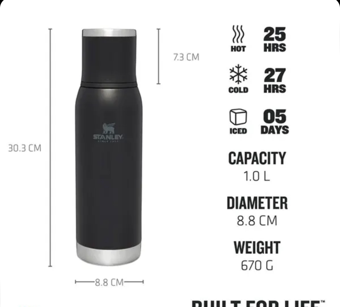 محصولی بسیار کاربردی و با کیفیت از کمپانی آمریکایی استنلی می باشد که این کمپانی با سابقه ای بیش از یک قرن طرفداران بسیاری در سراسر جهان دارد. از آن جا که این کمپانی در ابتدا محصولات خود را جهت ارائه به نیروهای دریایی و هوایی تولید کرد، تمرکز و هدف اصلی خود را در راستای افزایش طول عمر آن ها قرار داد. به طوری که این محصولات در ماجراجویی ها و سخت ترین شرایط مانند دمای 70- درجه سانتی گراد، طوفان های شدید، افتادن از ارتفاع 1200 متری و حتی اصابت گلوله مقاوم می باشند.