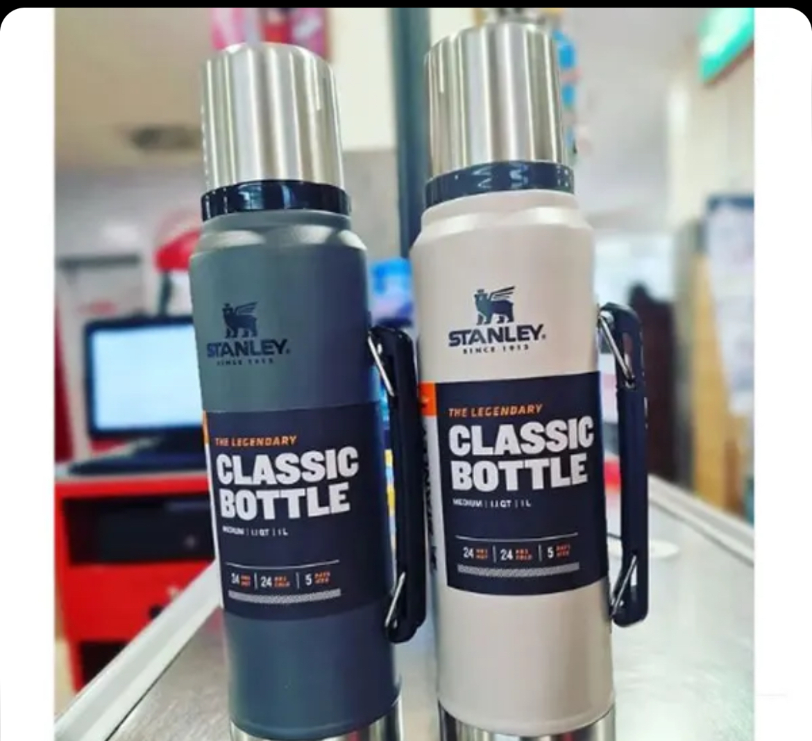 از دیگر محصولات کمپانی استنلی می باشد که با طراحی کلاسیک و جذاب، مورد توجه طرفداران این برند قرار گرفته است. از آن جا که کمپانی استنلی در ابتدا محصولات خود را جهت ارائه به نیروهای دریایی و هوایی تولید کرد، تمرکز و هدف اصلی خود را در راستای افزایش طول عمر آن ها قرار داد. به طوری که این محصولات در ماجراجویی ها و سخت ترین شرایط مانند دمای 70- درجه سانتی گراد، طوفان های شدید، افتادن از ارتفاع 1200 متری و حتی اصابت گلوله مقاوم می باشند.در هنگام رفتن به ساحل، سفرهای طبیعتگردی، کوهنوردی و کمپینگ، پس از گردش و پیاده روی طولانی مدت، استراحت و میل کردن نوشیدنی مورد علاقه تان می تواند تشنگی تان را بر طرف کرده و باعث رفع خستگی تان شود تا ادامه روز را با انرژی بیشتری سپری کنید. در این صورت به همراه داشتن فلاسک 1 لیتری استنلی مدل Classic Bottle می تواند گزینه ای ایده آل برای نگهداری انواع نوشیدنی های گرم و سرد در سفرهای شما باشد تا از نوشیدن یک فنجان چای داغ، قهوه و یا یک لیوان آبمیوه خنک لذت ببرید.این محصول از جنس فولاد بسیار با دوام و دارای ظرفیتی برابر با 1 لیتر می باشد. بدنه فولادی این محصول مقاومت زیادی در برابر ضربه و زنگ زدگی داشته که به شما این امکان را می دهد تا بتوانید مدت ها از آن استفاده نمایید. دیواره این محصول مجهز به عایق دو جداره با لایه میانی خلاء بوده که از قابلیت حفظ دما در مدت زمان طولانی برخوردار است؛ به این صورت که قابلیت نگهداری 24 ساعت نوشیدنی گرم، 24 ساعت نوشیدنی خنک و نگهداری قطعات یخ به مدت 120 ساعت (5 روز) را دارا می باشد.این فلاسک مجهز به یک درپوش پیچی با قابلیت استفاده به عنوان لیوان و یک درب پیچی با واشر عایق است که پس از بسته شدن آن، دیگر نگران نشتی محتویات داخل فلاسک نخواهید بود. از دیگر ویژگی های فلاسک Classic Bottle این است که علاوه بر حفظ دمای مایعات در مدت زمان طولانی، مانع از تغییر بوی آن ها نیز شده و برخلاف برخی محصولات به نوشیدنی شما طعم و بوی فلز را نخواهد داد. در ساخت این محصول از مواد بدون BPA (نوعی ماده سمی) استفاده شده تا حفظ سلامت شما را تضمین کند. همچنین فلاسک استنلی قابلیت شستشو در ماشین ظرفشویی را دارد و آسیبی به آن وارد نخواهد شد. طراحی این فلاسک به گونه ای است که بر روی بدنه آن دستگیره ای تاشو تعبیه شده که می توان در هنگام عدم استفاده آن را به سمت داخل جمع کرد تا فضای کمتری را اشغال کند.