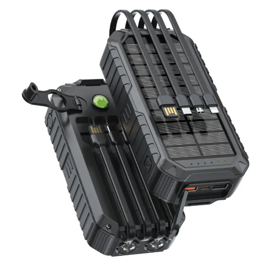 این پاوربانک با مجموعه‌ای از چهار کابل داخلی، یک چراغ قوه دوگانه، یک قطب‌نما و یک گرادیان ارائه می‌شود.