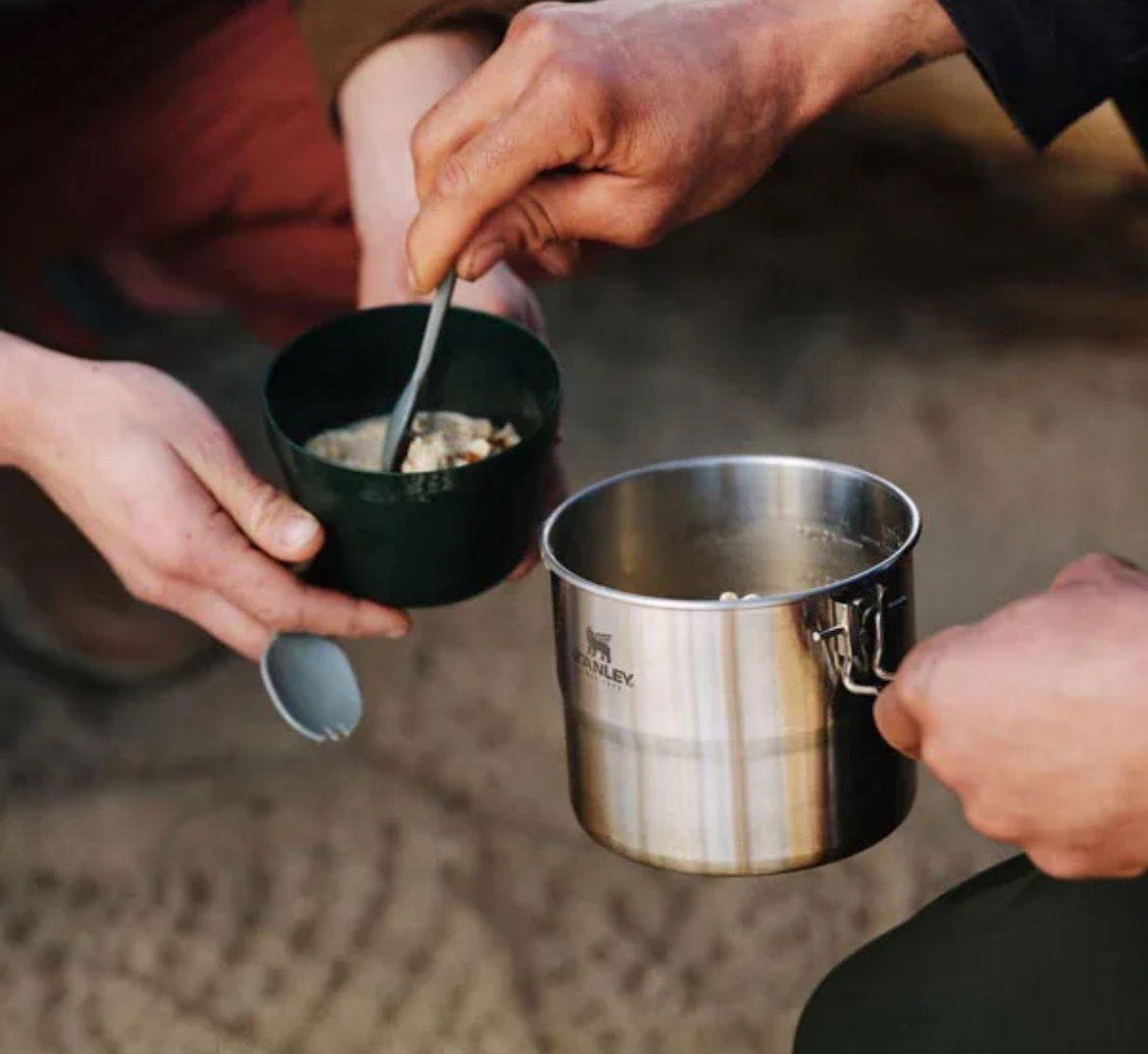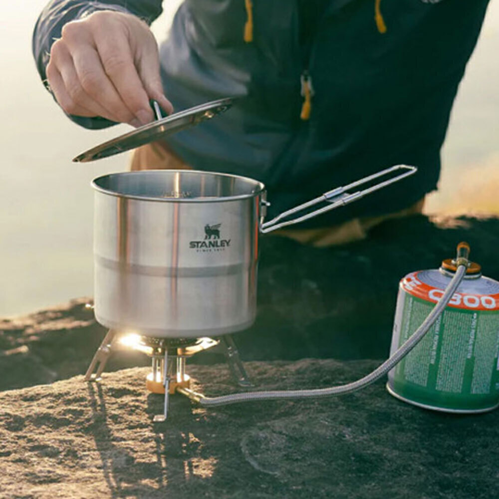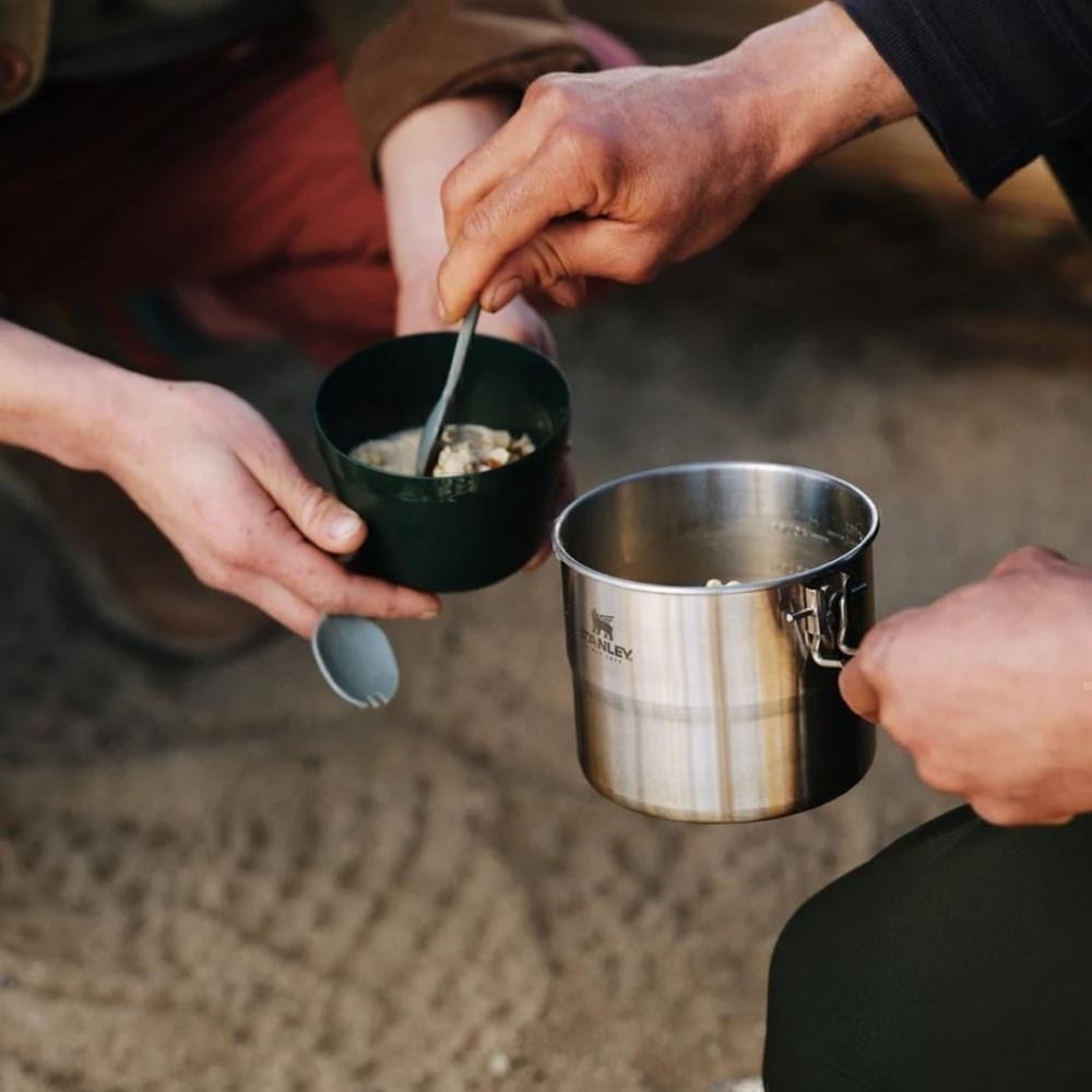 از غذای داغ و خوشمزه مستقیماً از روی آتش یا اجاق کمپ لذت ببرید. ست پخت و پز دونفره استنلی مدل COOK SET FOR TWO، یک ست آشپزی 6 تکه استیل ضد زنگ می باشد که برای پخت یک غذای خوشمزه برای دو نفر در یک قابلمه استیل 1.0 لیتری عالی است. دسته قفل قابلمه برای پخت و پز پایدار گسترش می یابد. زمانی که زمان غذا خوردن است، 2 کاسه و 2 قاشق امکان اشتراک گذاری را فراهم می کند.این محصول با ابعاد و حجم کمی که اشغال میکند، میتواند جای ظروف اضافه و جا گیر همراه شما را بگیرد و خود به تنهایی کار تمامی آن ها را انجام دهد، و بهترین دوست و همراه شما در سفر های طبیعت گردی و کوهنوردی شما باشد.