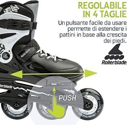 – اسکیت رولربلید بچگانه مدل فیوری Fury قابلیت تغییر سایز آسان تا 4 سایز را دارد که براحتی میتوانید این عمل را انجام دهید به نحوی که بعد از آزاد کردن دکمه و فشار دادن آن با کشیدن ساق اسکیت به سمت عقب، سایز کفش اسکیت به راحتی تغییر میکند.