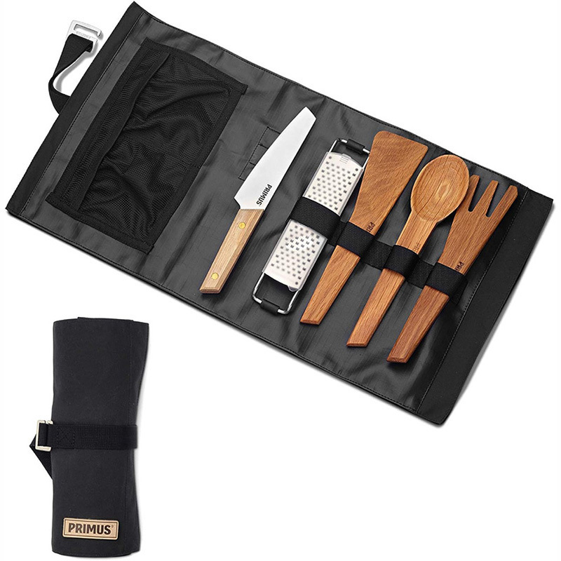 ست آشپزی پریموس مدل CAMPFIRE PREP SET شامل تمام ملزومات برای تهیه یک غذای عالی در فضای باز است. این مجموعه دارای یک جیب برای لوازم جانبی اضافی است و می توان از آن به صورت رول شده روی سطح صاف یا آویزان استفاده کرد. داخل رول از پلی آمید با روکش PU و قسمت بیرونی G1000 ساخته شده است. پس از اتمام پخت، ابزار استفاده شده را سر جای خود قرار دهید، آن را بپیچید.