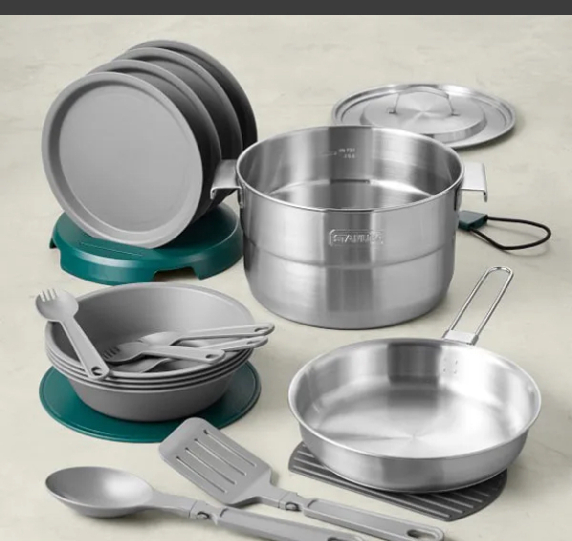 این مجموعه آشپزی بی نظیر برای تعداد چهار نفر بسیار مناسب می باشد. برای سرو غذا با وجود 4 بشقاب، 4 کاسه و 4 اسپورک می توانید به نحو احسنت از اعضاء خانواده، دوستان و ... در طبیعت پذیرایی کنید. البته شرکت استنلی برای خشک شدن ظروف نیز ایده جالبی داشته و با طراحی یک سبد خشک کن به شما این امکان را می دهد تا بعد از شستن ظرف ها برای خشک کردن نیاز به دستمال نداشته باشید، و با قرار گرفتن در هوای آزاد ظروف خشک شوند. در انتها نیز برای بسته بندی عالی یک مهار کننده درب قابلمه طراحی شده تا با بستن آن از ریخته شدن محتویات قابلمه در حین حمل و نقل جلوگیری کند.