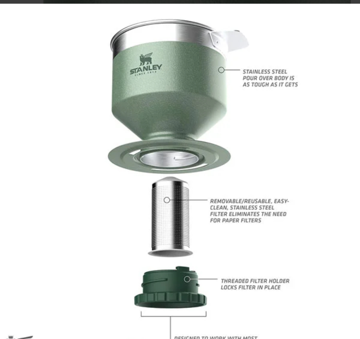 قهوه ساز Stanley مدل POUR OVER مناسب جهت استفاده در فعالیت های کمپینگ ، سفر ، طبیعت گردی ، محل کار و منزل بوده و قابلیت شستشو در ماشین ظرفشویی را نیز دارد ، همچنین فاقد هرگونه مواد سرطان زای BPA میباشد.