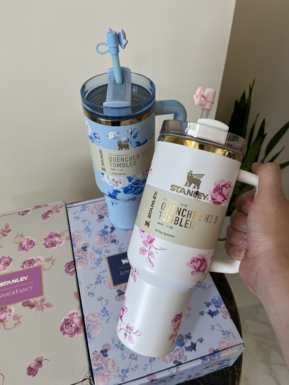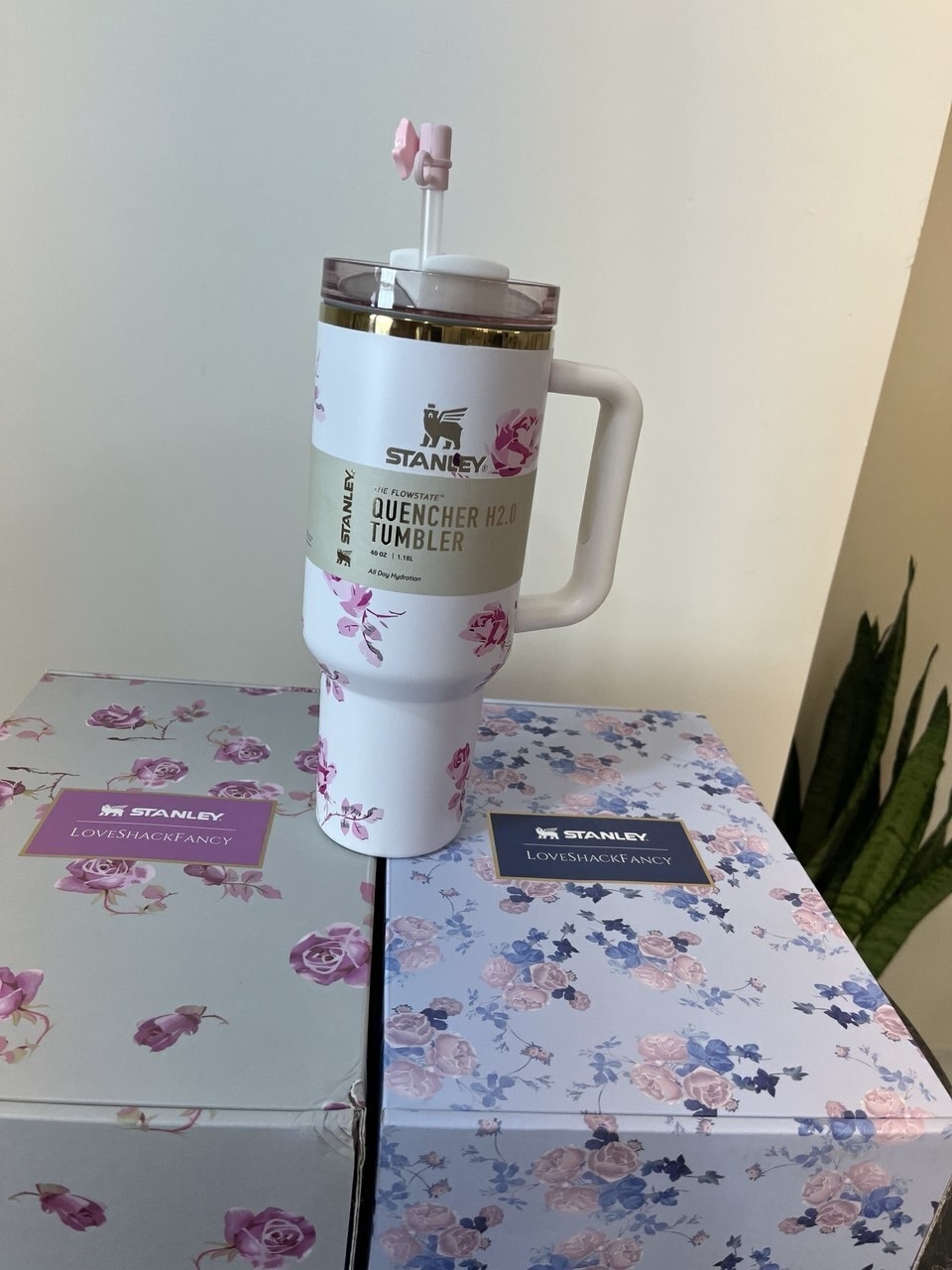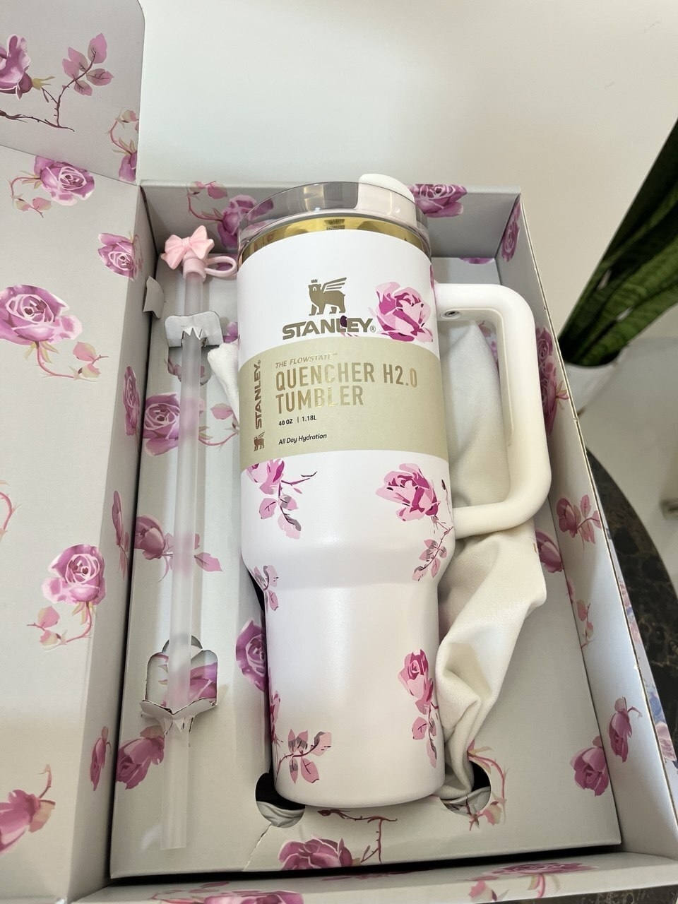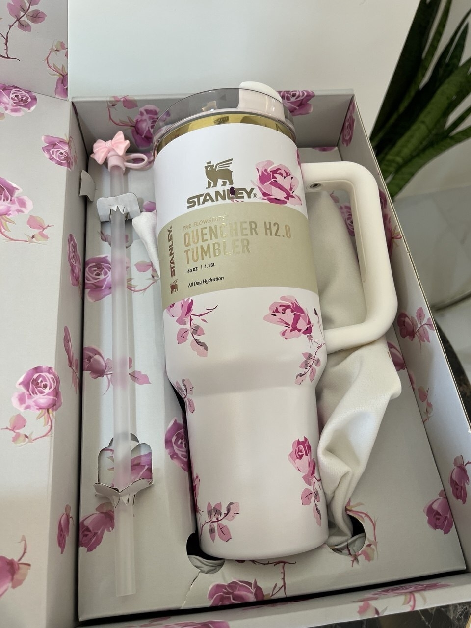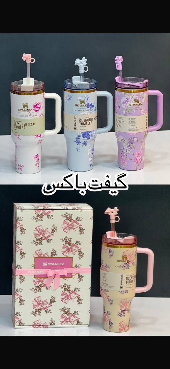 ماگ گلدار دسته دار استنلی اورجینال تامبلر مدل QUENCHER H2O TUMBLER